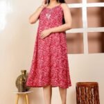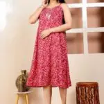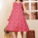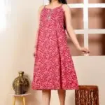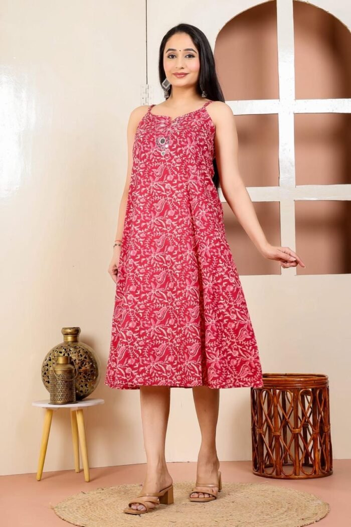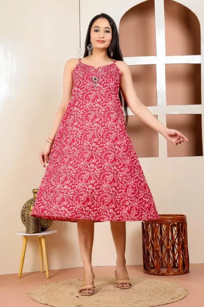 {Chic off-shoulder midi dress in an earthy tone with a bold black and white nature-inspired block print. Flattering ruffle-hem silhouette.}{A contemporary midi dress featuring an elasticized off-shoulder neckline and short puff sleeves. The fabric is a light beige or off-white base with a striking all-over black and white block print, possibly featuring abstract floral or botanical motifs. The relaxed A-line shape and tiered/ruffled hem ensure maximum comfort and a fun, vacation-ready style. Accessorized here with large silver earrings.}
